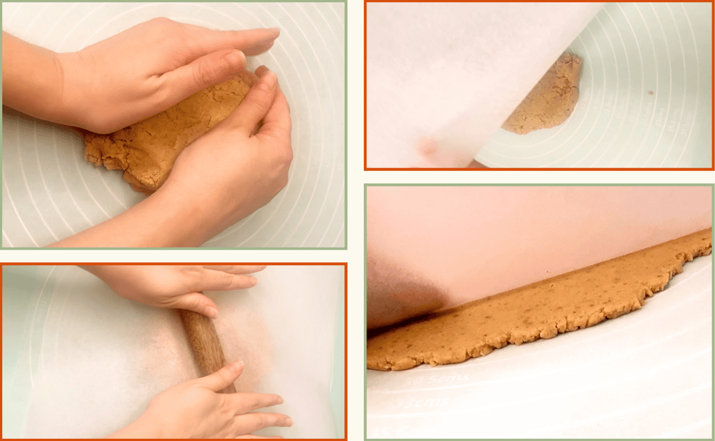 Gather all the leftover dough and place it between the same parchment sheets. Roll again to the same thickness.