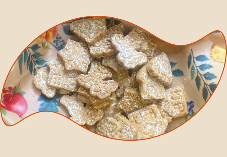 Mini crisp cookies with a soft touch of lemon and a lightly caramelized sweetness from panela. Small, festive, and perfect for the holiday season.