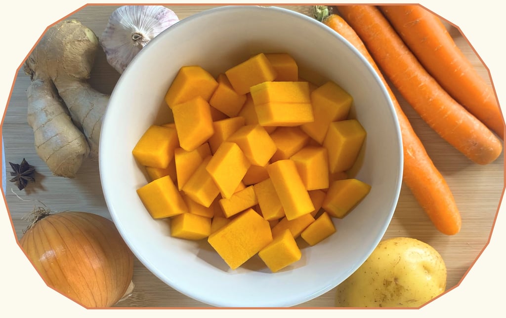 About ½ small pumpkin (around 700–800 g / 1.5–1.7 lb), peeled and diced