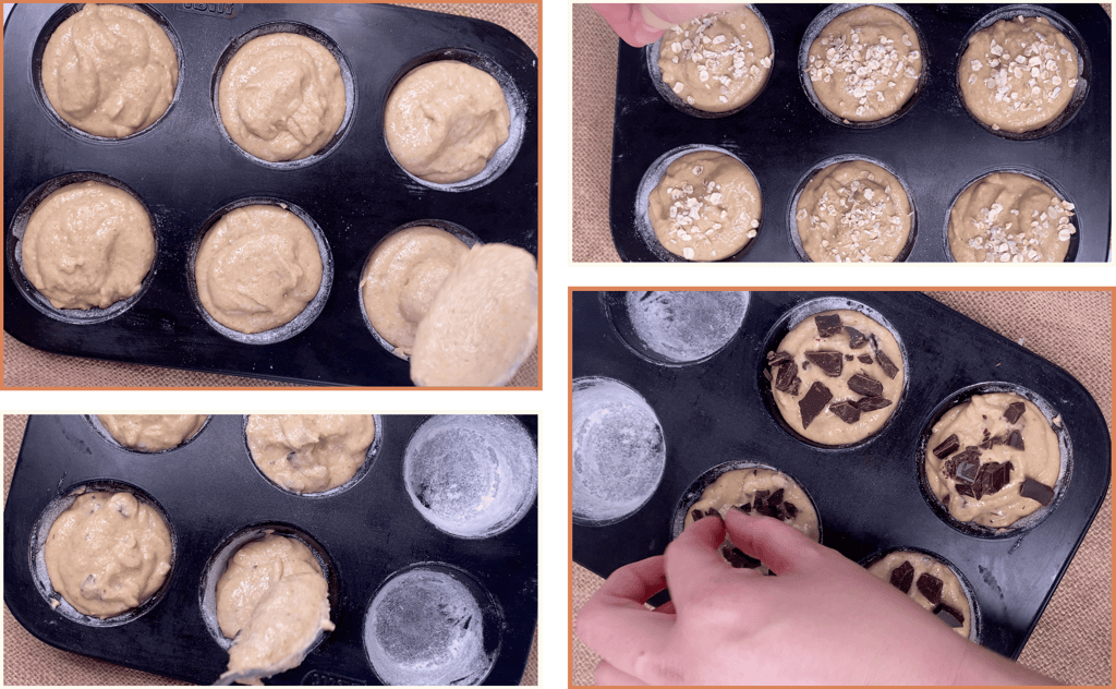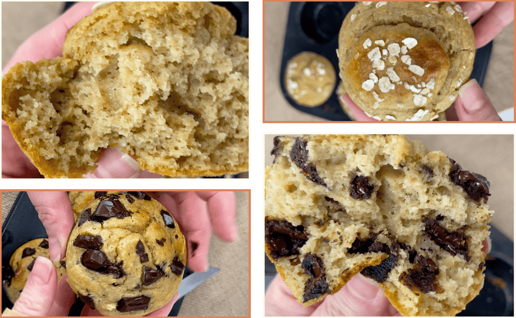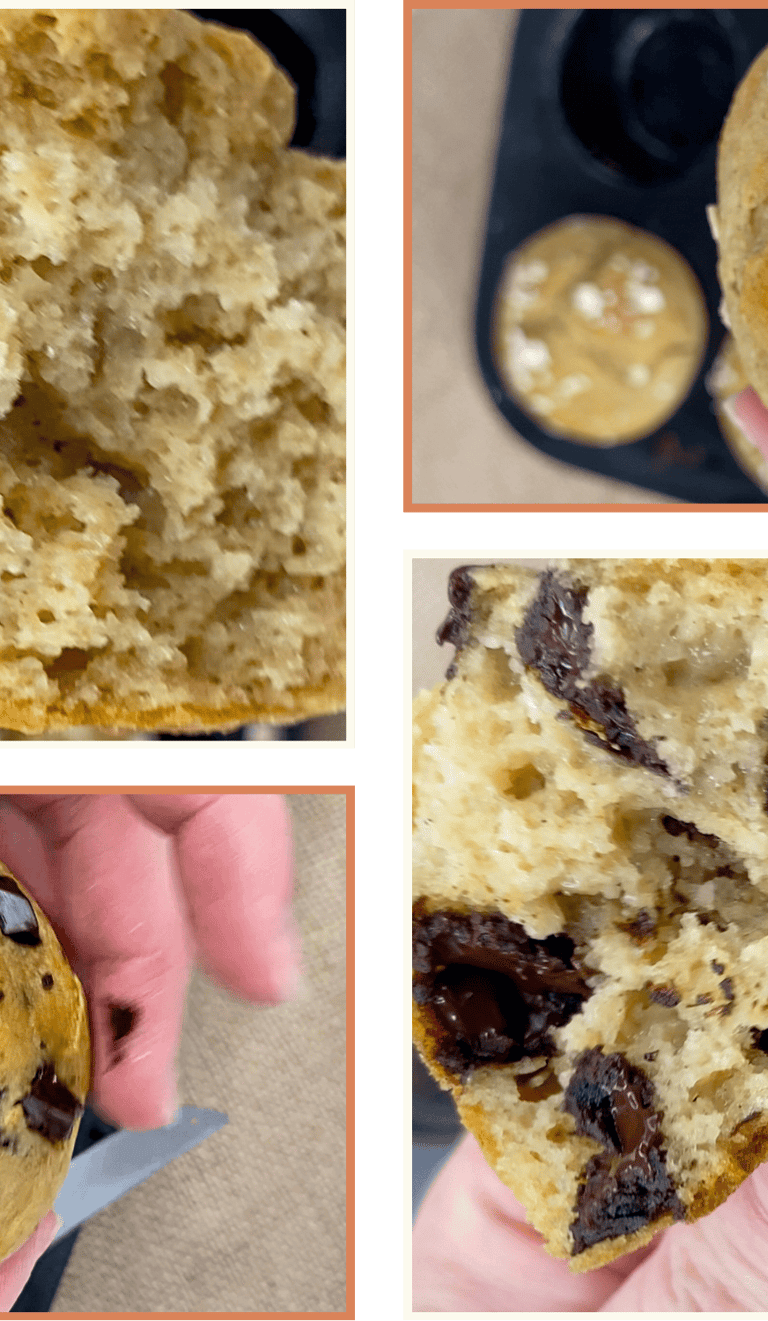 Note: If you add dark chocolate, the calories and macros will increase slightly depending on how much chocolate you use and the type of chocolate. As a general guideline, adding a small amount of dark chocolate can raise the calories by approximately 20 to 40 calories per muffin and add a very small increase in protein.