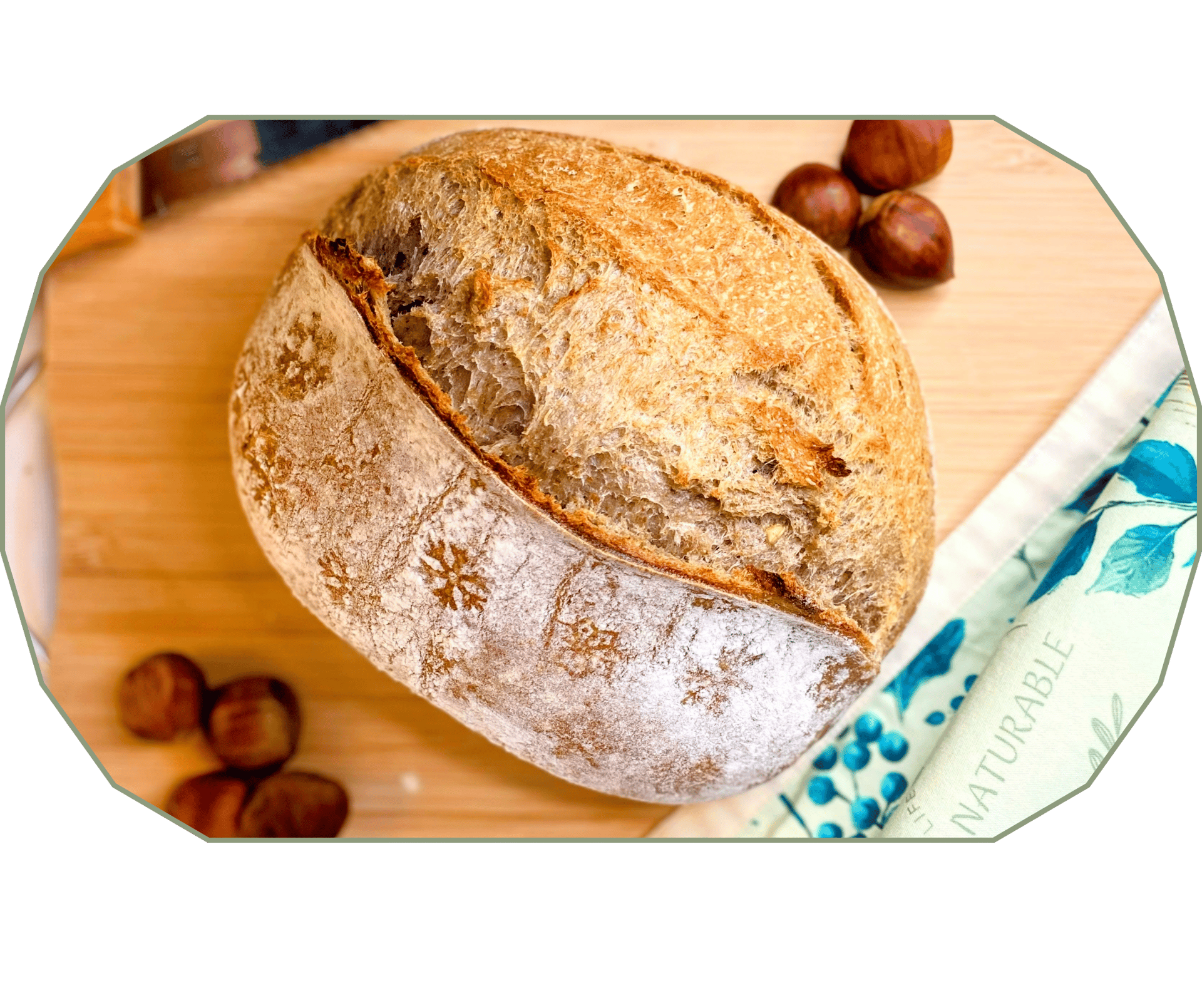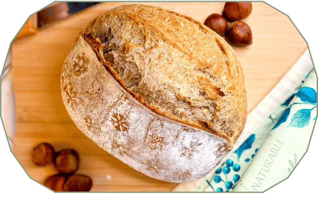 A warm and comforting winter loaf with a subtle chestnut aroma and a tender crumb that holds beautifully.