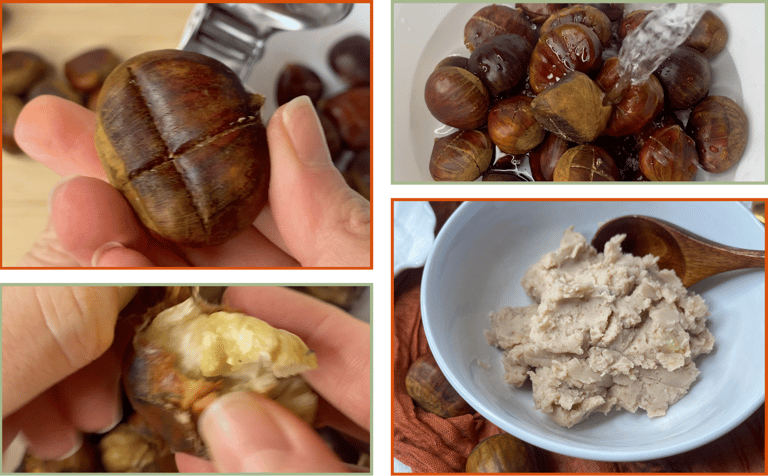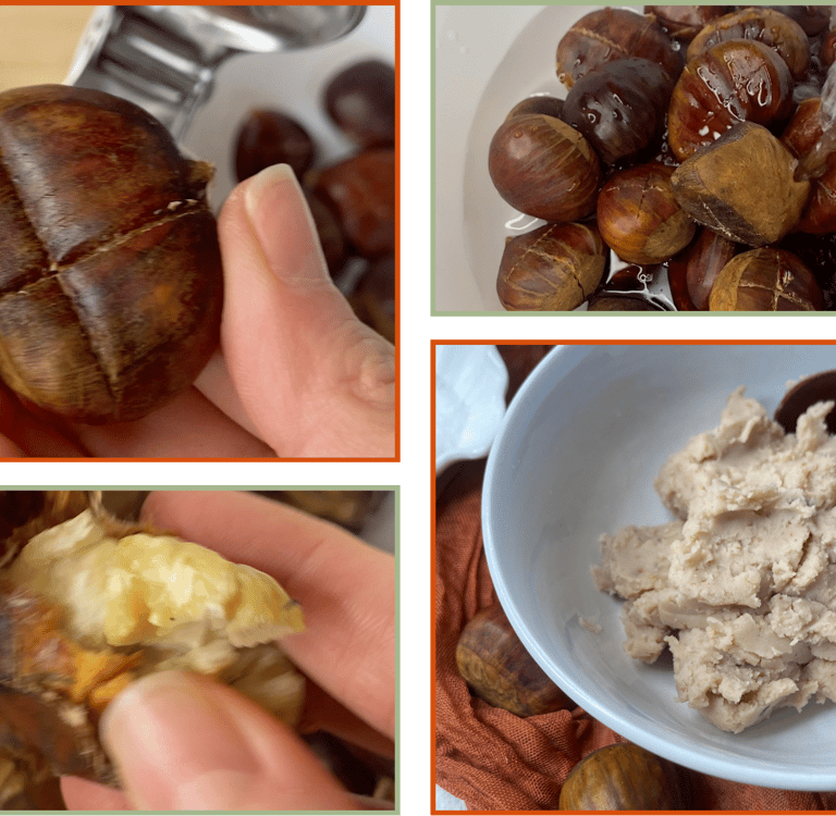 Note: If you prefer a simpler approach, you can use ready-made chestnut purée. Choose one without added sugar and made only from chestnuts (or chestnuts and water). Roasted chestnut purée gives the best flavor. Avoid sweetened chestnut spreads or crème de marrons, which are not suitable for rustic bread.