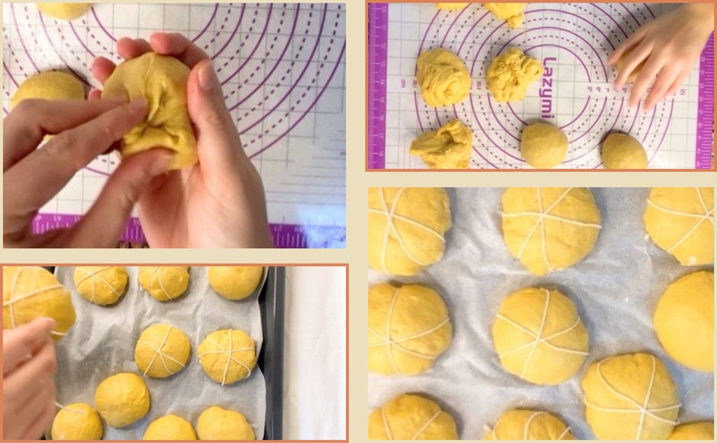 Place the shaped buns on a baking sheet lined with parchment paper.