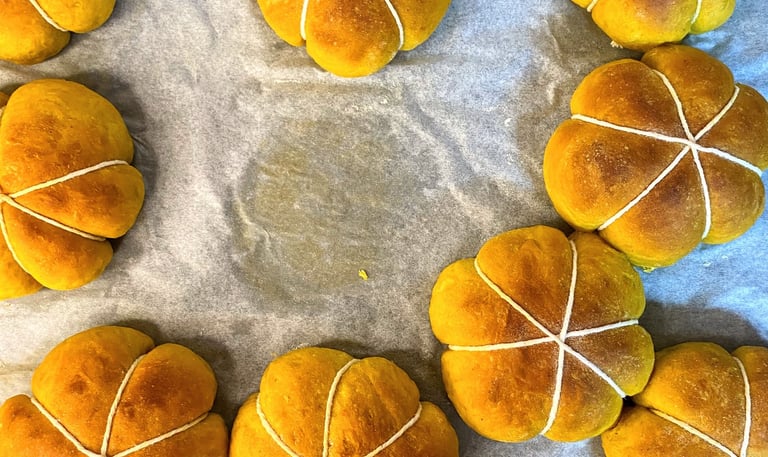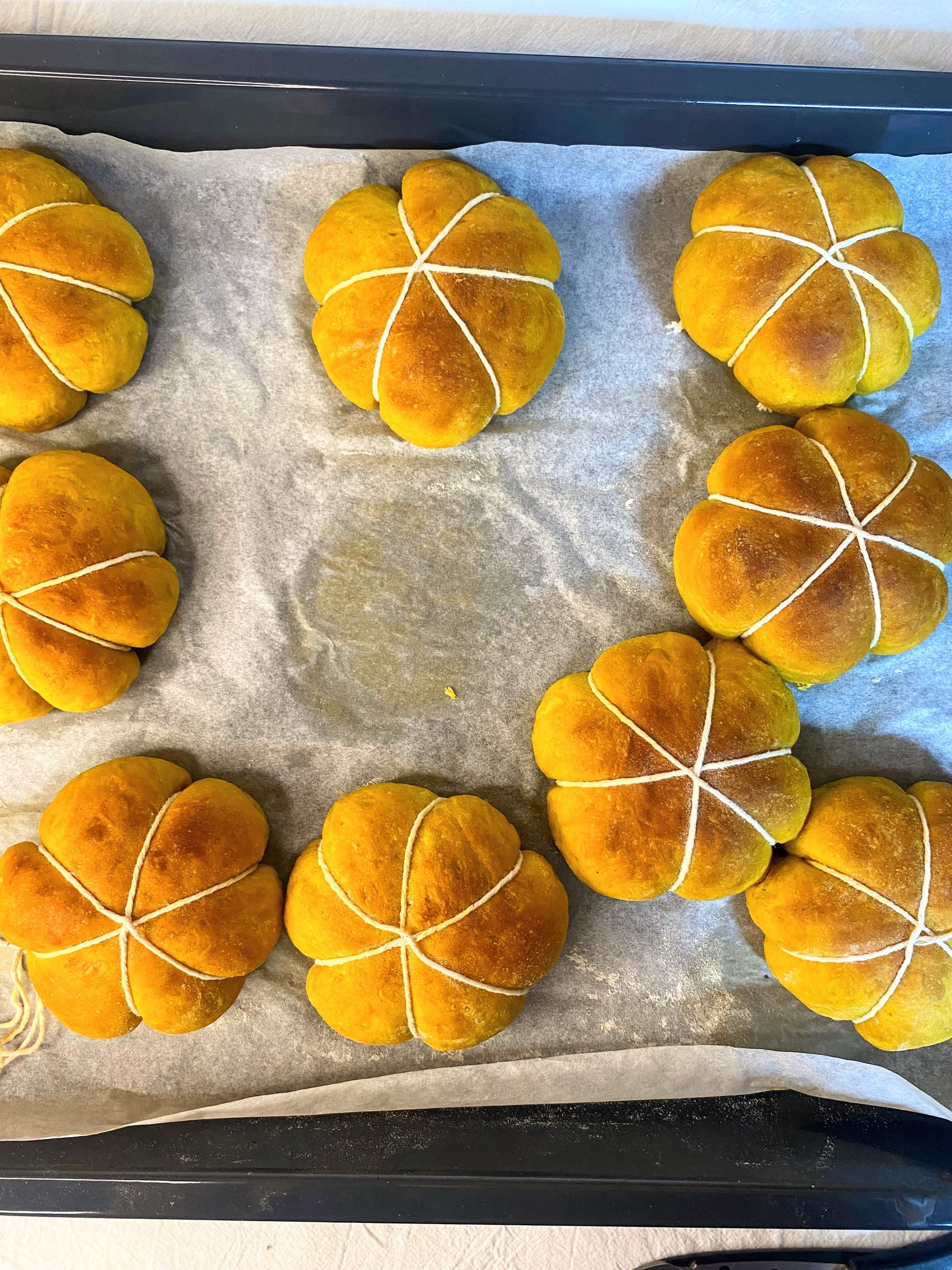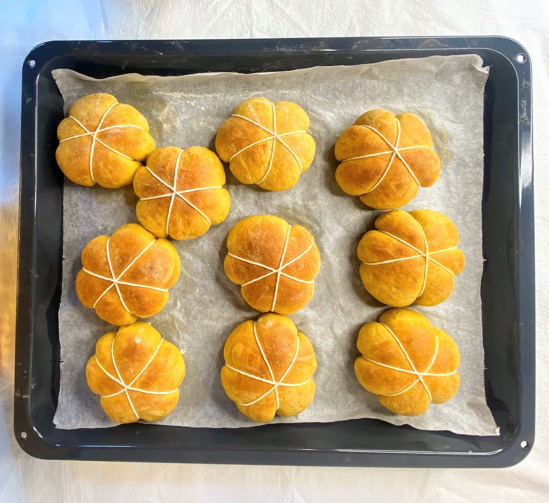 These pumpkin buns are my kind of Halloween baking. Nothing loud or artificial, just the real scent of autumn wrapped in a soft, golden dough.