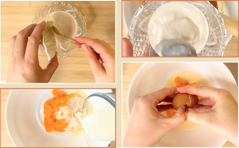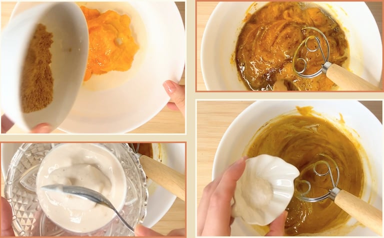 In a large bowl, combine the pumpkin purée, egg, panela (or the sweetener you chose), and spices.