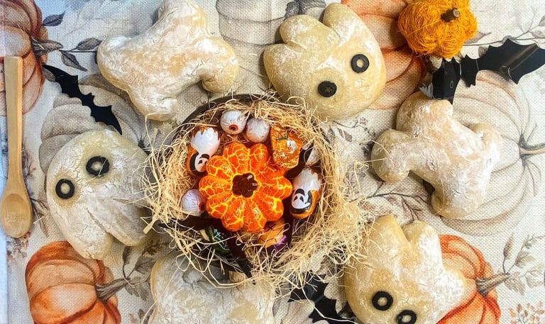 Soft milk buns take a spooky twist in this Halloween-inspired bake. Shaped into little bones and ghosts, these sourdough (or yeast) buns combine creativity, simplicity, and flavor, a seasonal recipe that brings playful charm to the kitchen.