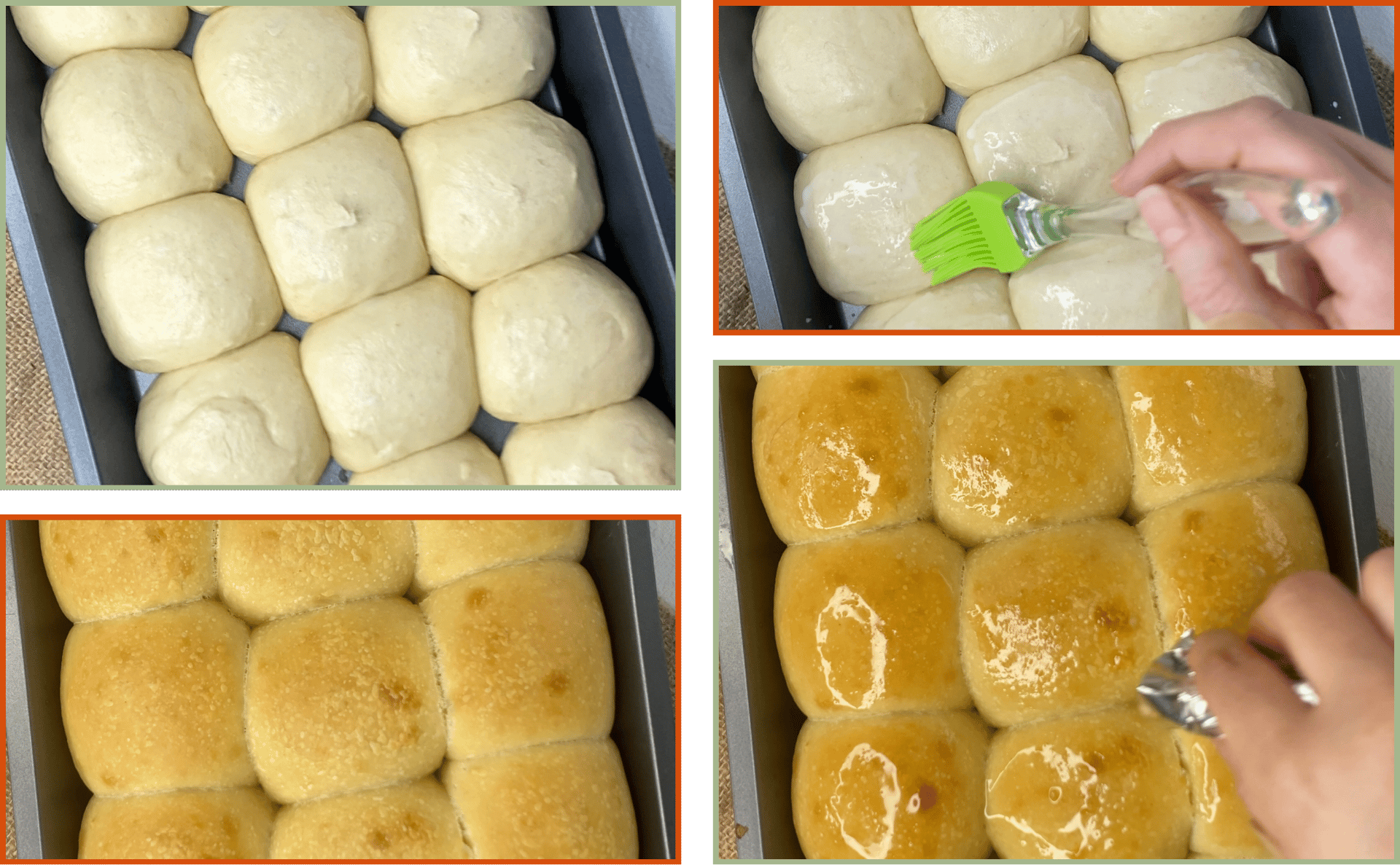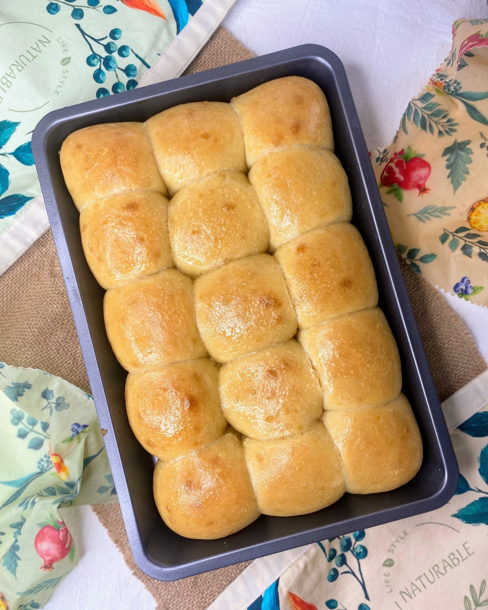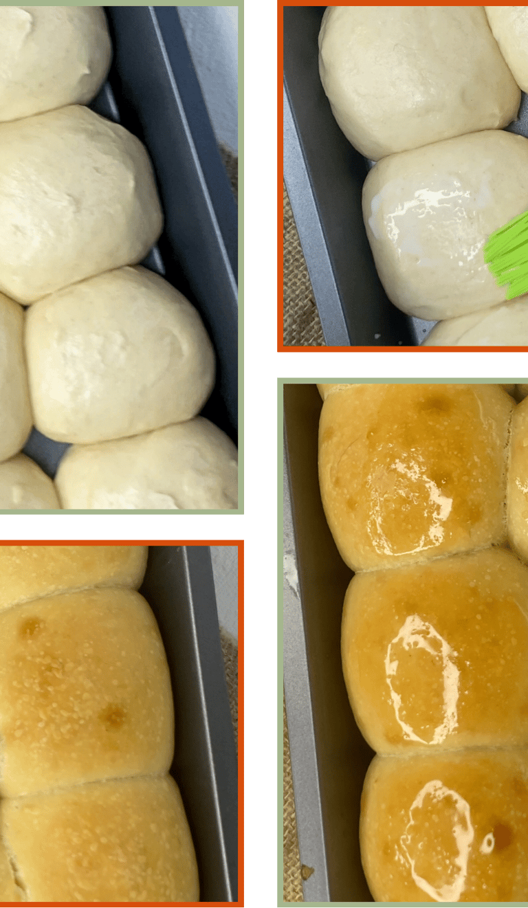 As soon as they come out of the oven, brush them with melted butter. This adds shine, flavour and keeps the crust extra soft.