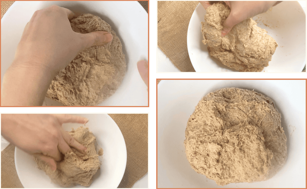 Because of this, the dough will not feel as stretchy or elastic as a white sourdough dough, and it is not expected to pass a strong windowpane test. This is normal and not a sign of poor mixing. The goal at this point is simply a cohesive, evenly mixed dough, not maximum gluten development.
