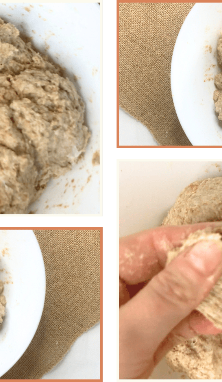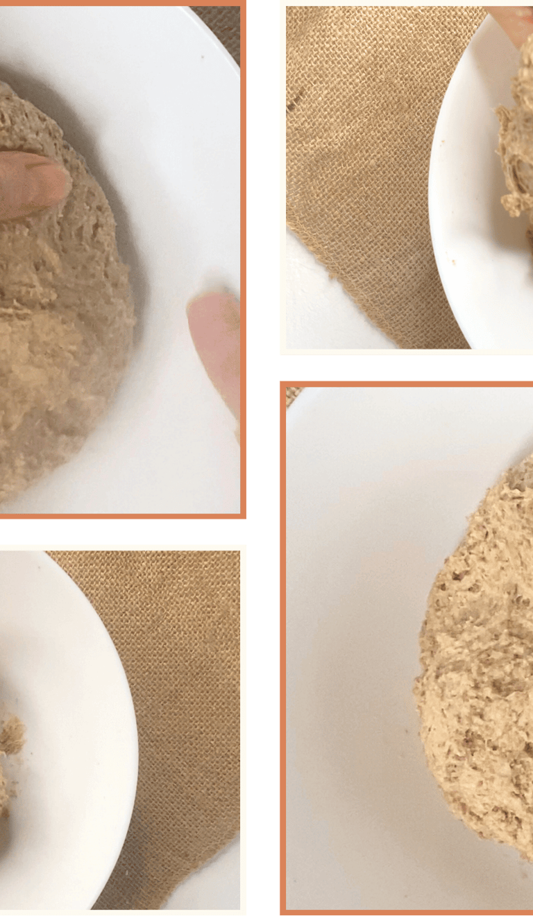 Because of the flours and the enrichment, this dough behaves differently from white sourdough. It won’t pass a perfect windowpane test, and that’s completely fine.